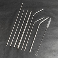 Juego de pajitas de acero inoxidable 304 reutilizables rectas dobladas ecológicas 6mm 8mm 12mm pajitas